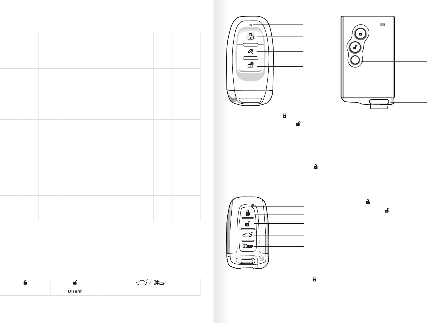 Key FOB buttons introduction & function description ------------------------------------------------------------------17-19