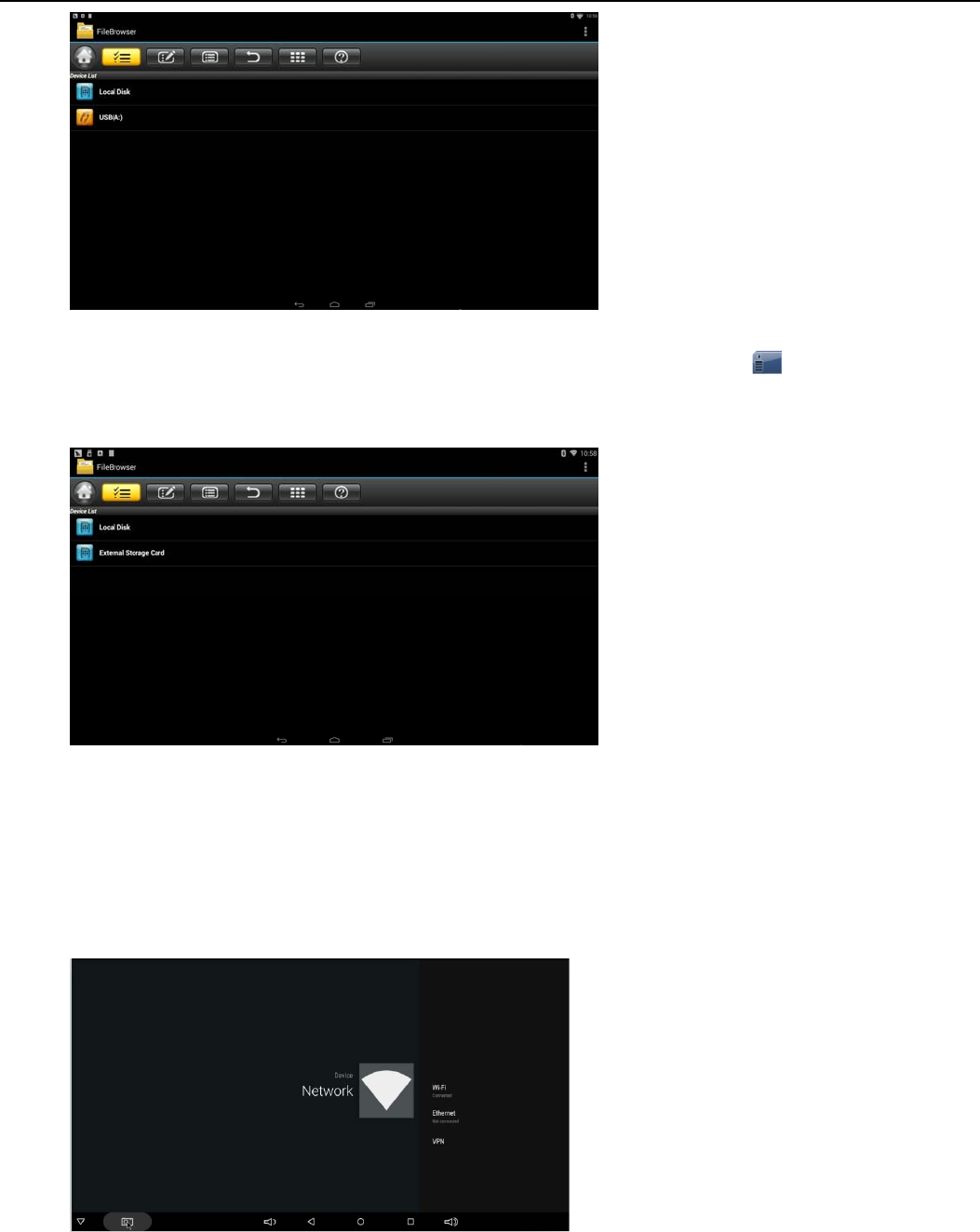 corner of the desktop, open “FileBrowser”, the identified External Storage Card will appear