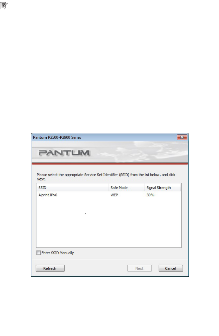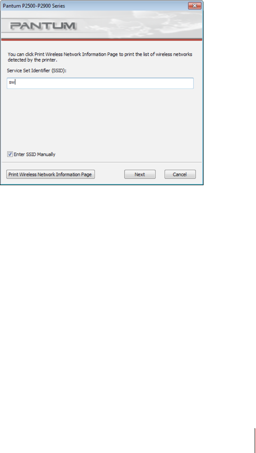 SSID: enter the service set identier of the network that you want to connect during printing,