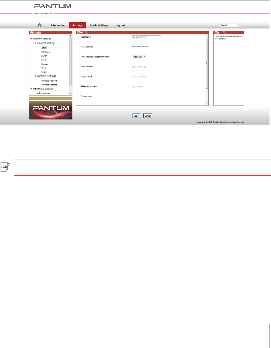 Note: • If DHCP cannot automatically obtain the IP address, the printer will automatically