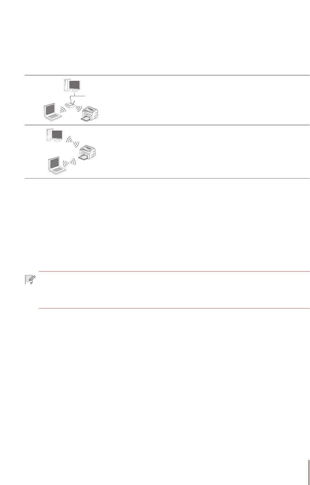Based on models, the ones with Wi-Fi printing support two types of wireless connection,