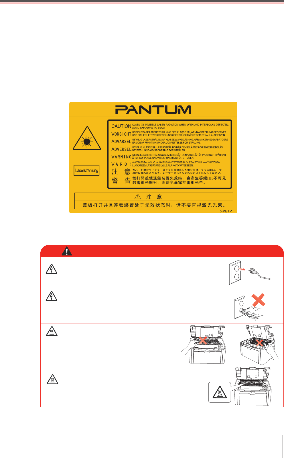 sealed in the printer, laser radiation will not leak. To avoid laser radiation, please do not