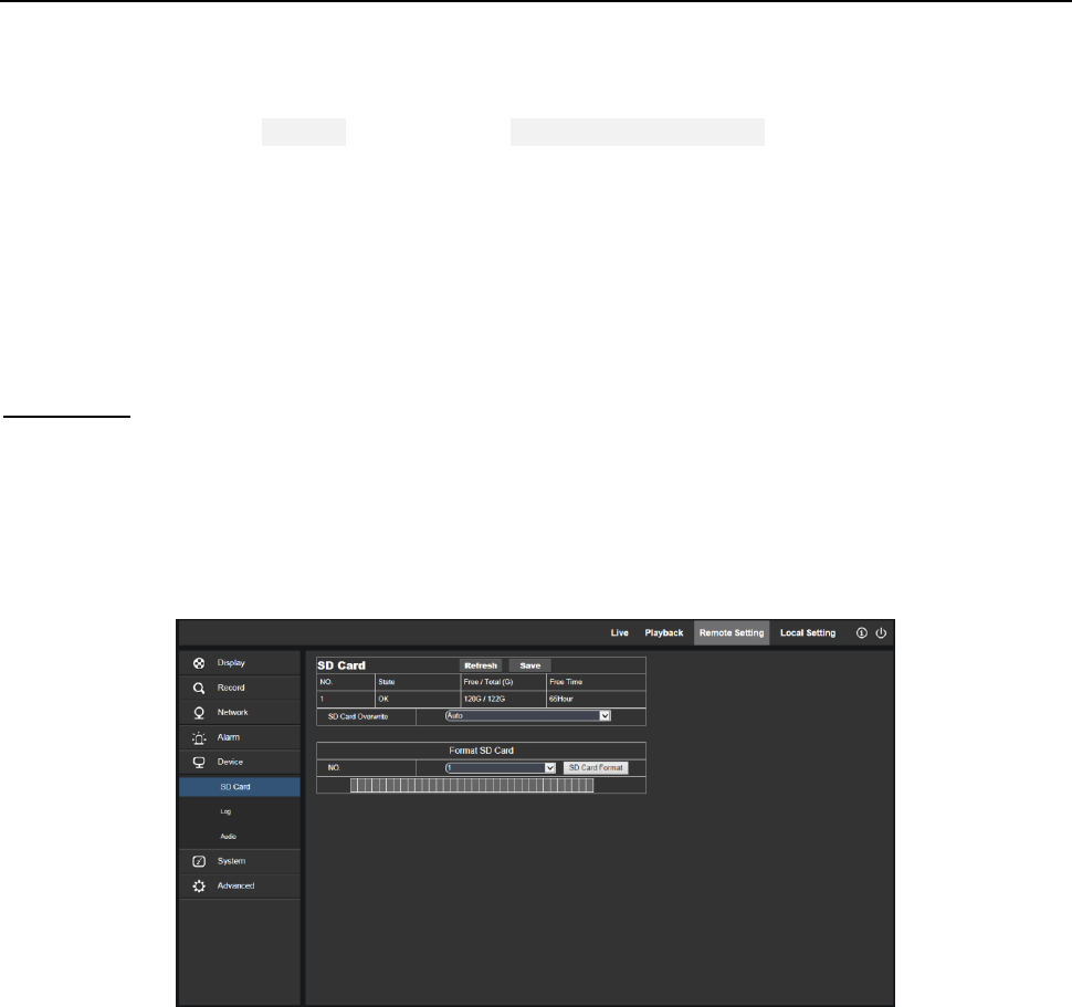 Insert SD card to device, system will auto detect the total capacity and balance capacity of SD card and give