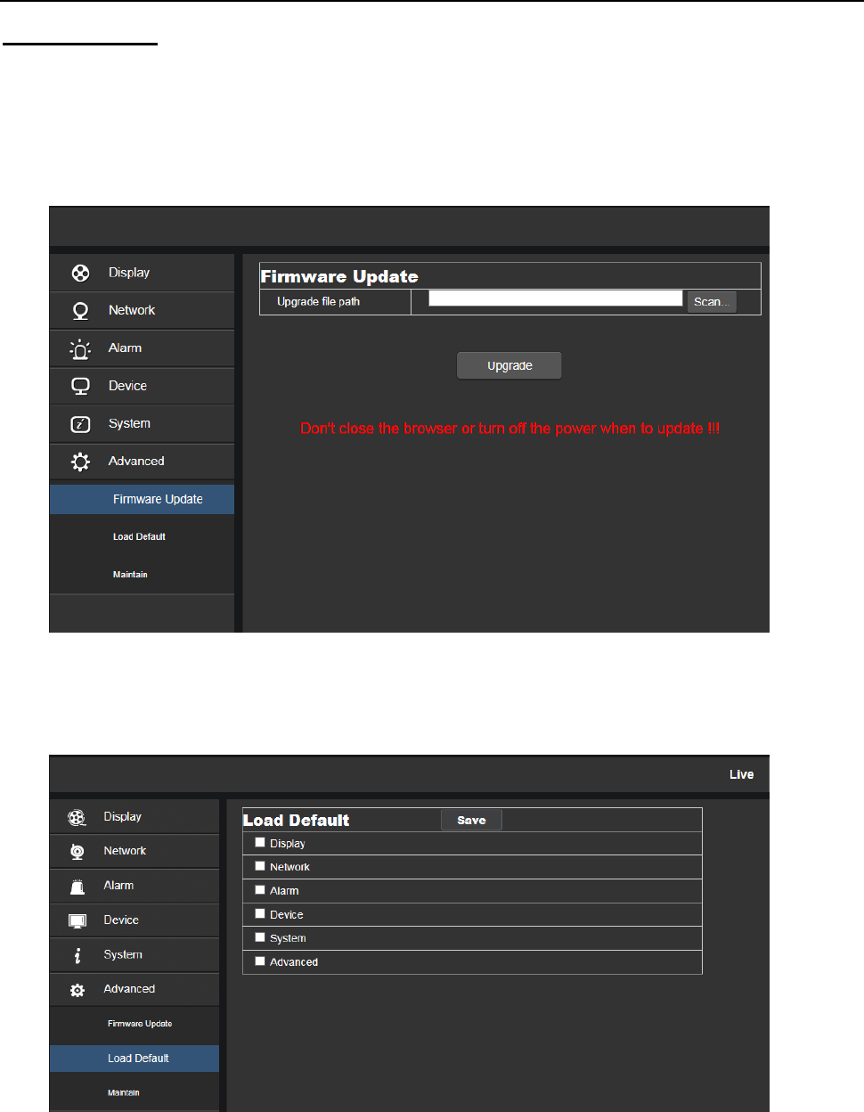 It includes System Update, Default Parameters and System Maintenance. Their interfaces and functions are
