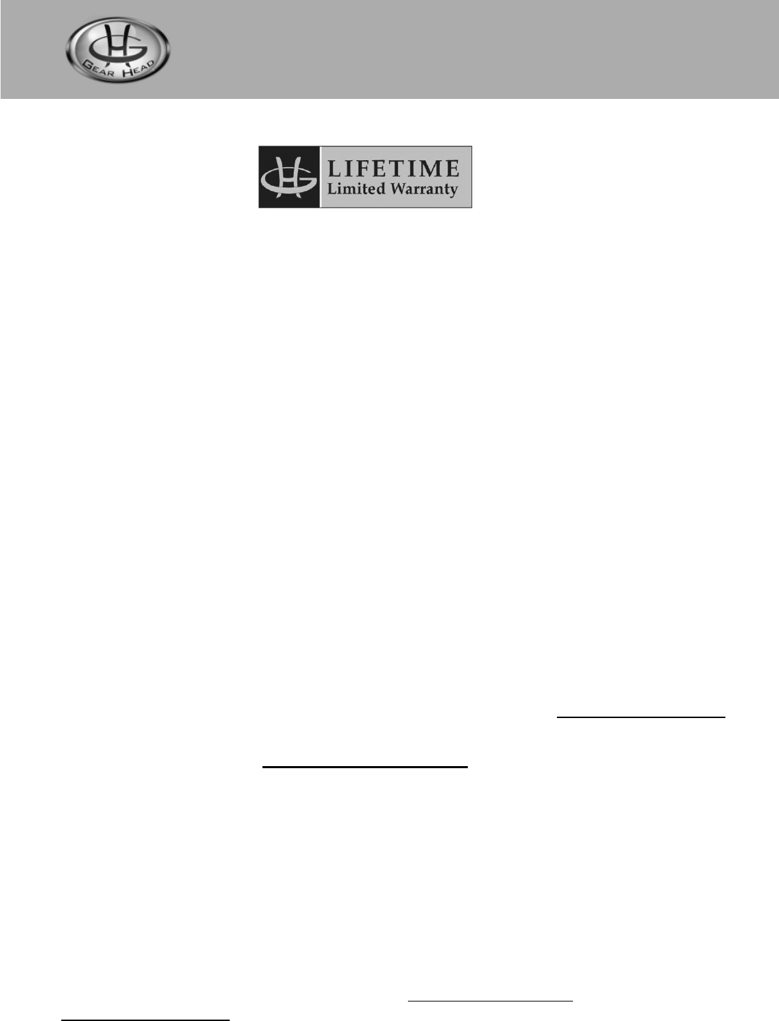 workmanship for the reasonable lifetime of the product. If the product is defective, Gear Head,