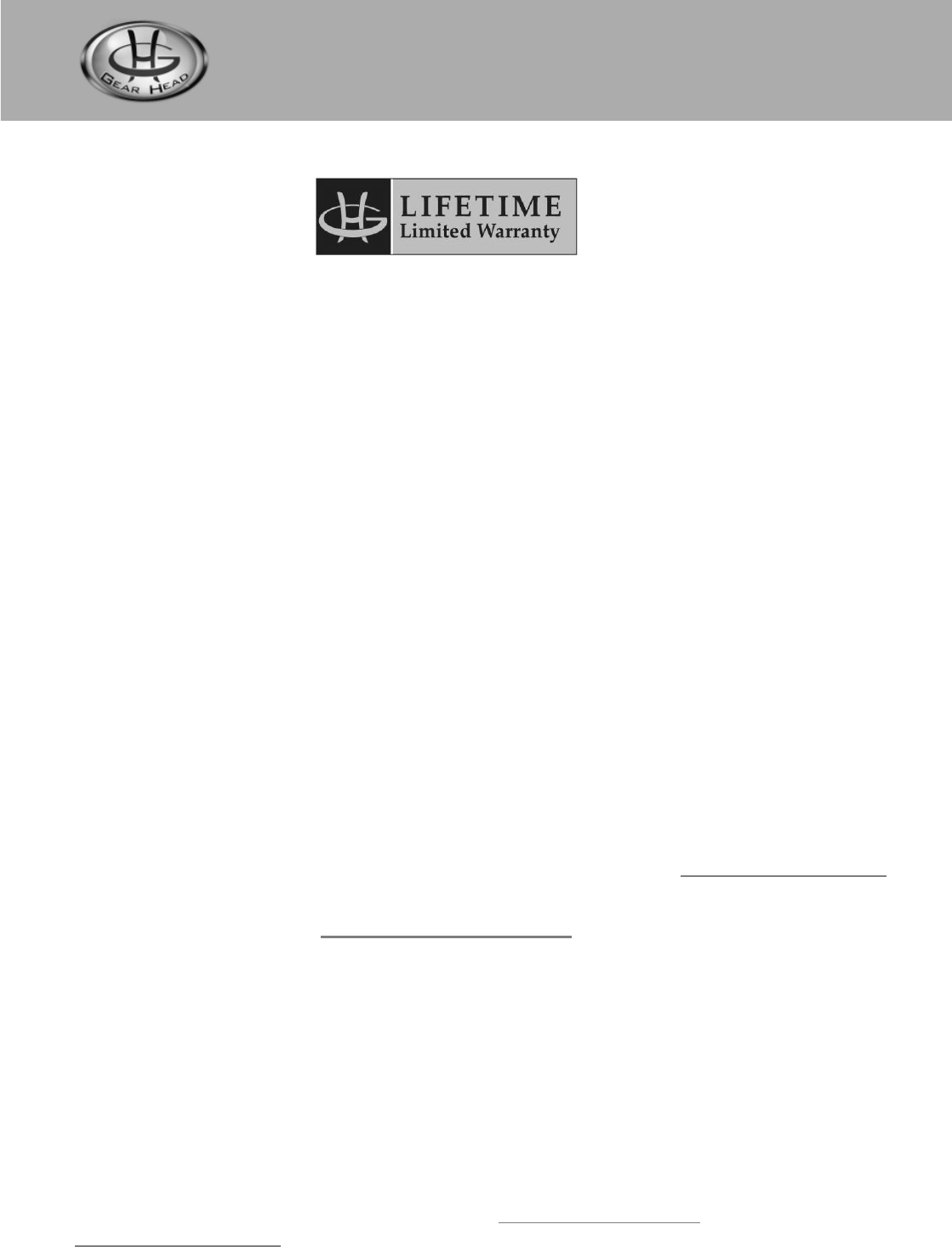 workmanship for the reasonable lifetime of the product. If the product is defective, Gear Head,