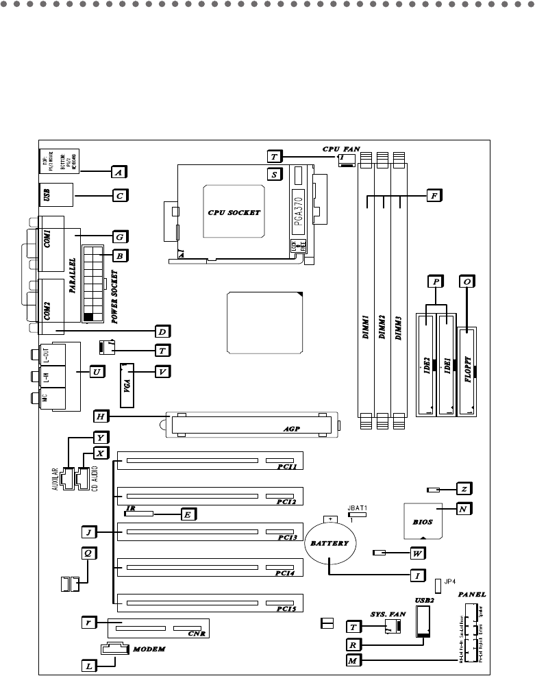 help you locate the appropriate “connectors”. The letters below describe the key Mainboard components.
