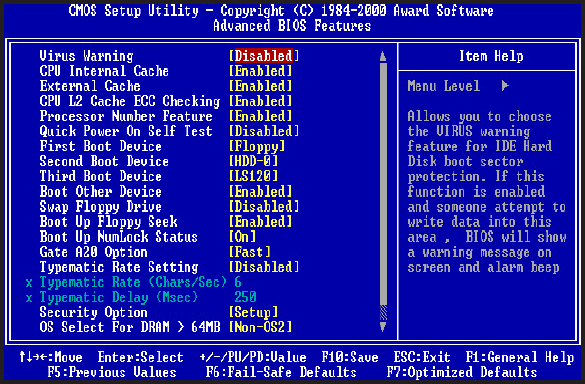 Enabled / Disabled Virus Warning function. Default setting is "Disabled".