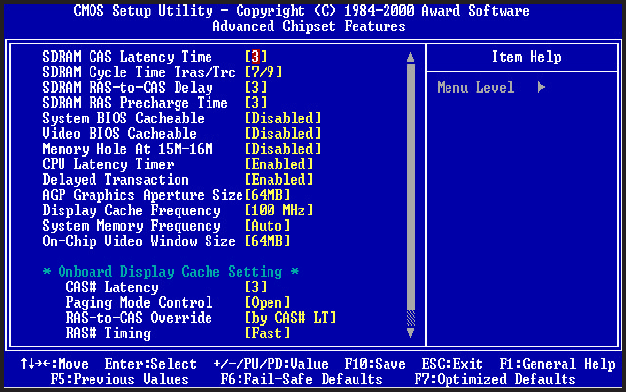 Enabled / Disabled Video BIOS cache. Default setting is "Enabled".