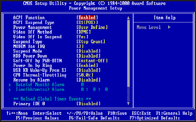 Sets power on Hot key. Default setting is "Ctrl-F1".