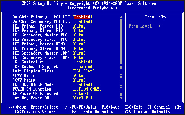 Enabled / Disabled on-chip primary PCI IDE. Default setting is "Enabled".
