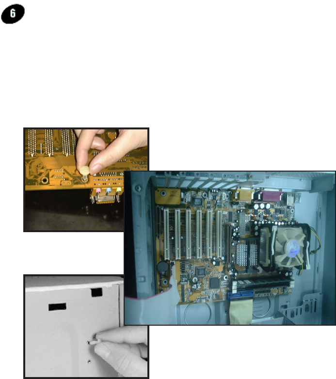 holes on the mainboard into the black pin making sure they are