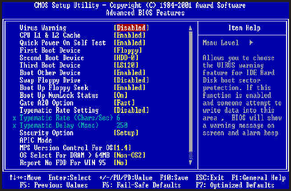 Advanced BIOS Features