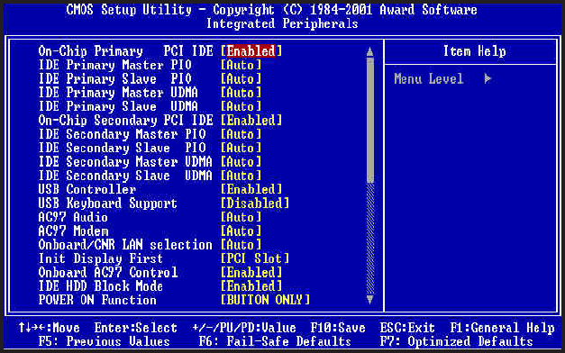 Enabled / Disabled on-chip primary PCI IDE. Default setting is "Enabled".