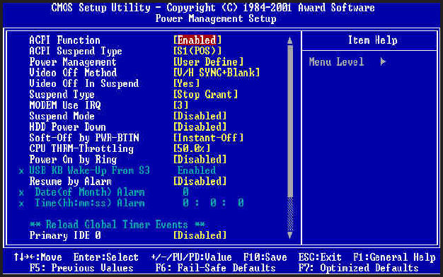 Specifies Power Management Mode. Default setting is "User Define".