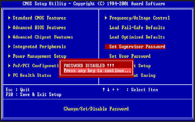 to enter password. A Message <<PASSWORD DISABLED!!!>> will