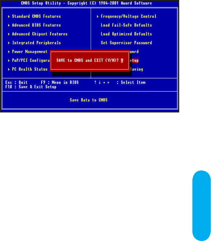 Type "Y" will quit the Setup Utility and Save the user setup value