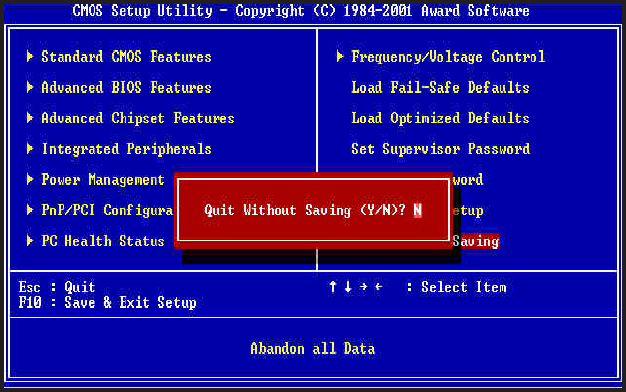 Type "N" will return to Setup Utility.