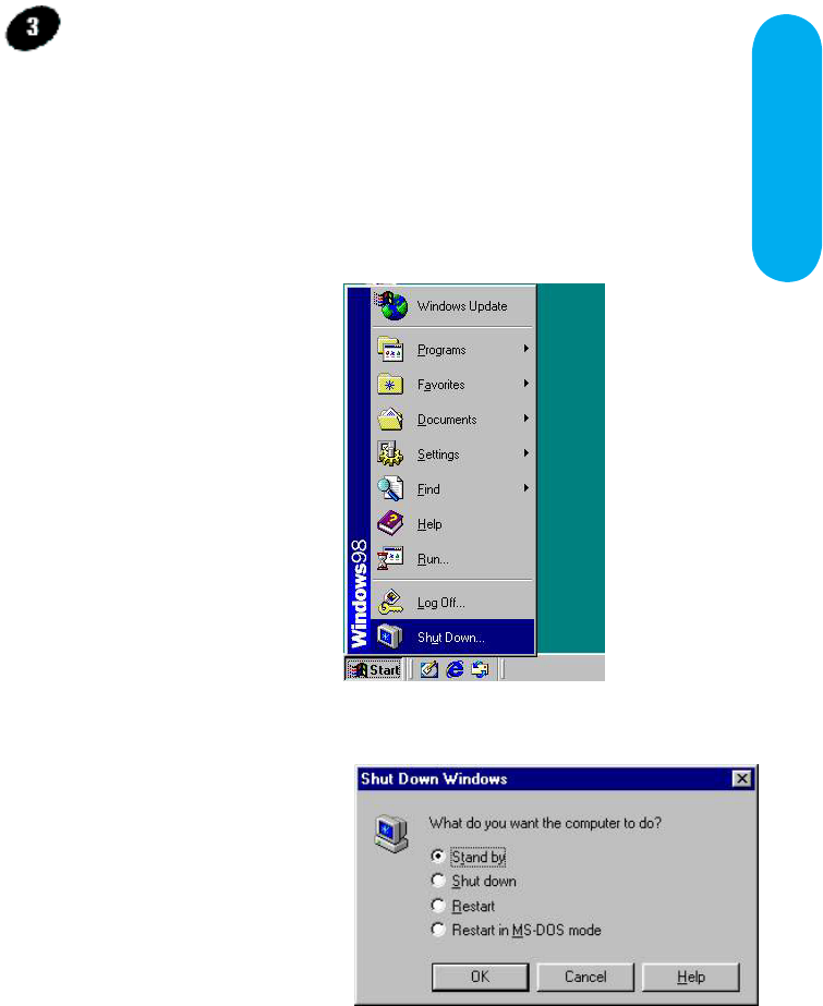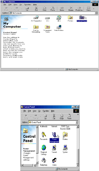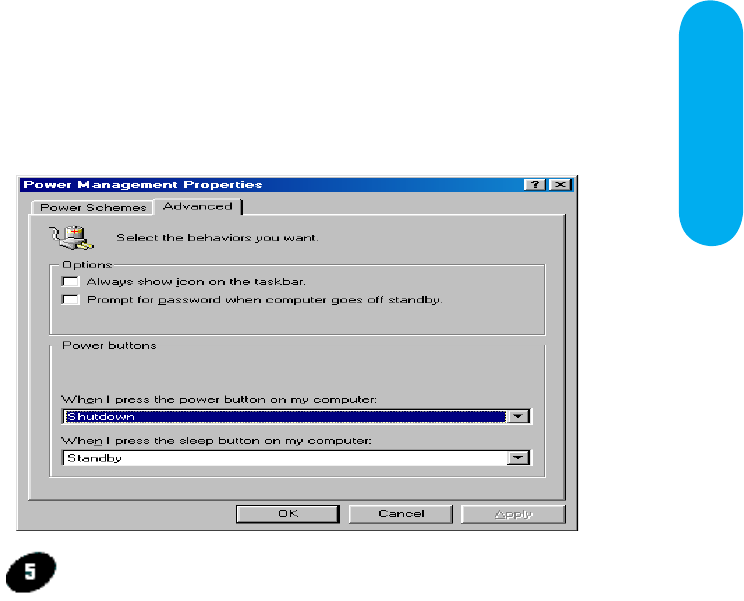 2. Set the system ”power on” button to initiate sleep mode in Win95/98: