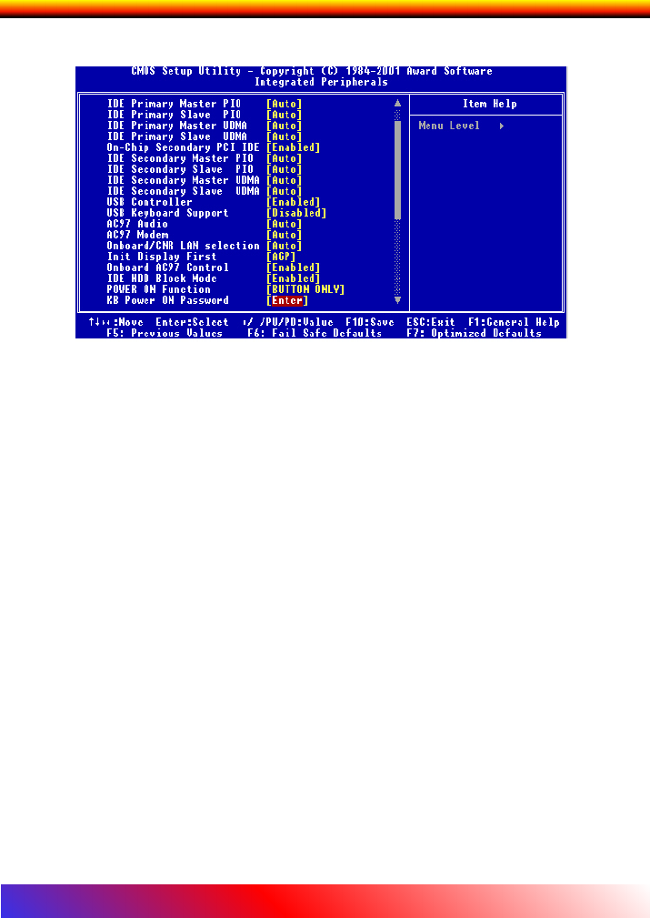 Enabled / Disabled on-chip primary PCI IDE. Default setting is "Enabled".