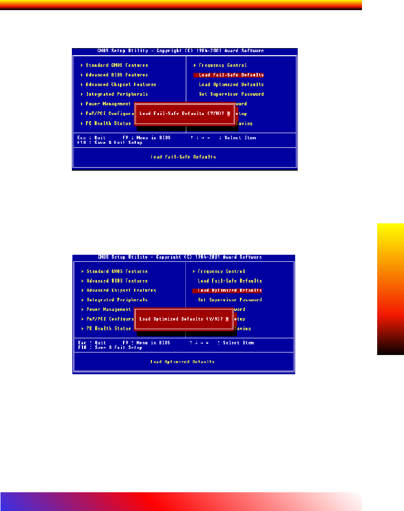 Selecting this field loads the factory defaults for BIOS and Chipset Features