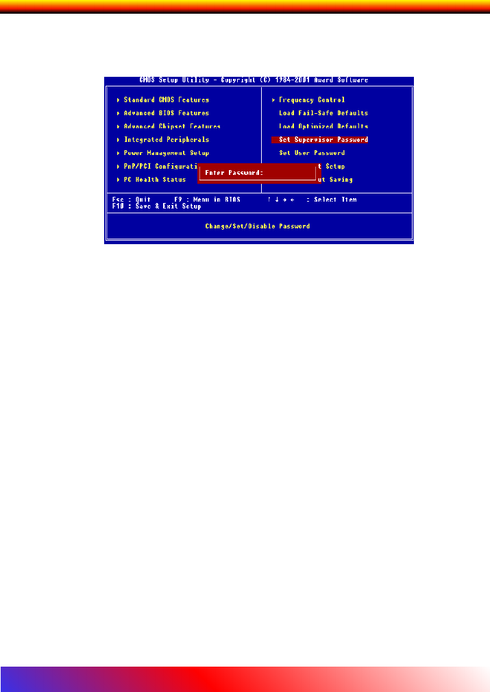 Security option" in"Advanced BIOS Feature" Menu,you will be prompted only