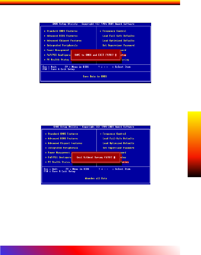 Type "Y"will quit the Setup Utility and Save the user setup value to RTC CMOS.