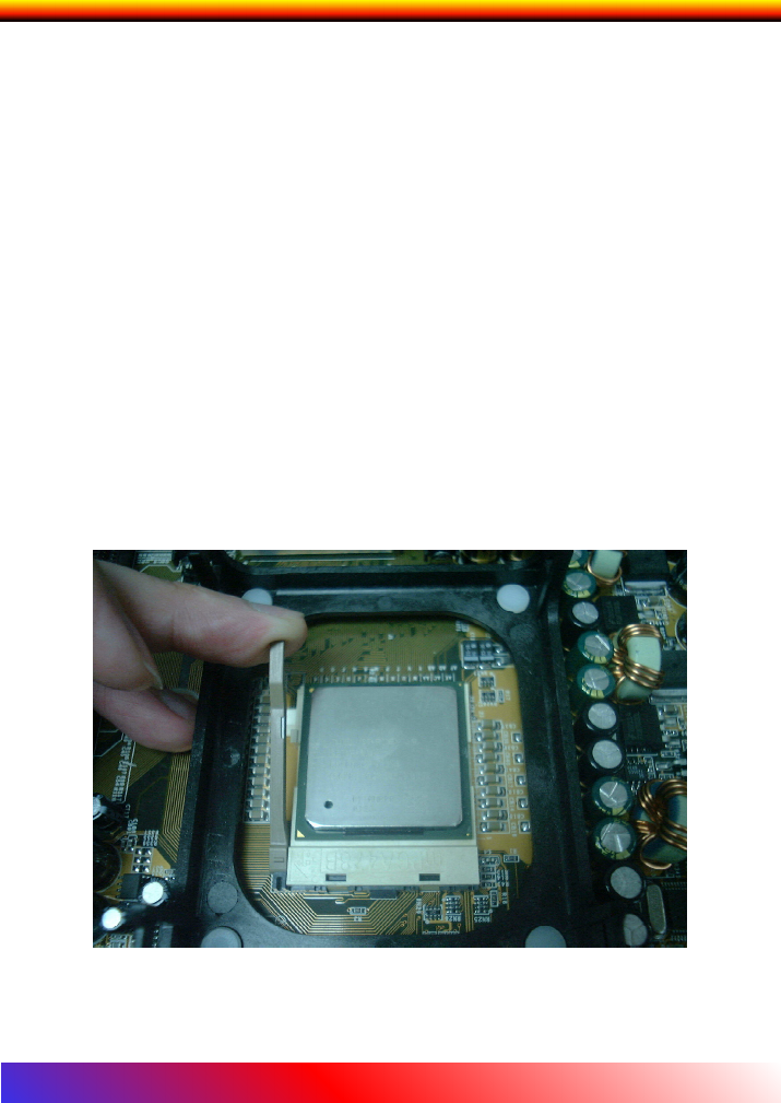 slight pressure on the CPU and rotate the lever back to its horizontal(or locking)