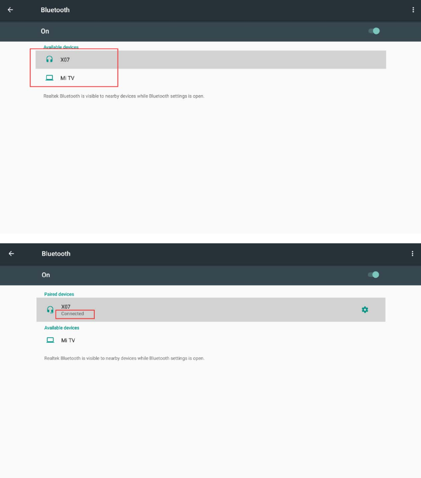 Step 3: Turn on the Bluetooth switch, then click on your Bluetooth device. It will