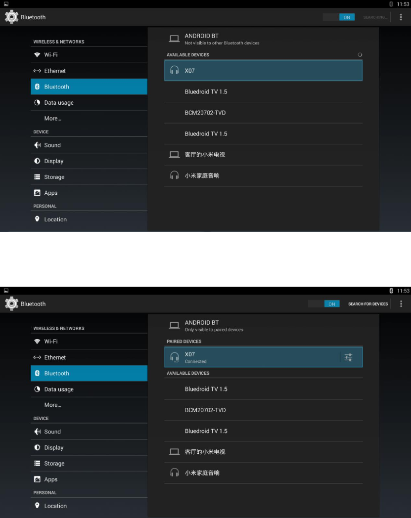 Step 4: Turn on the Bluetooth switch, then click on your Bluetooth device
