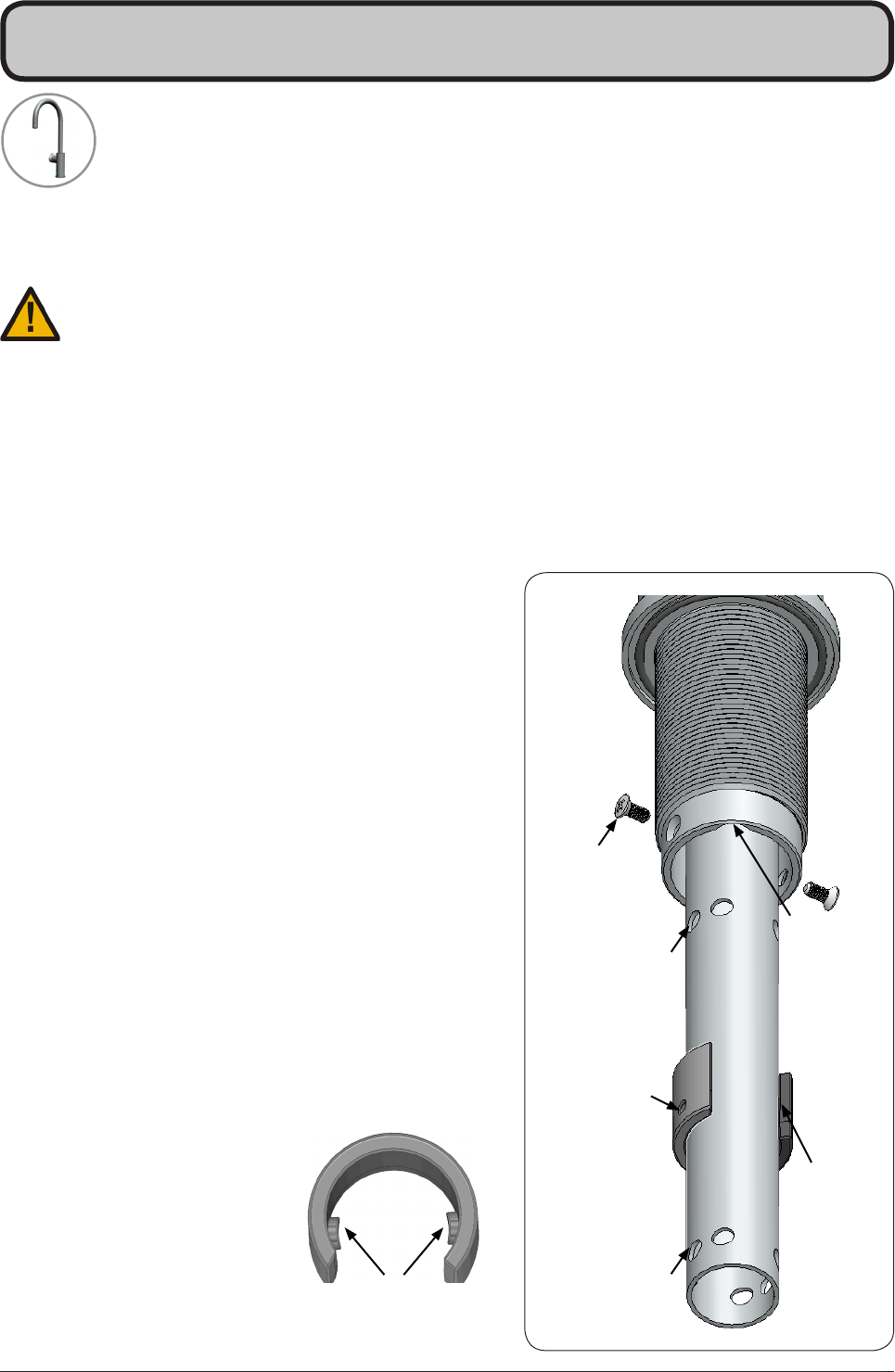 • Slide lower rubber washer, metal washer then tap nut over thread extension, then tighten the tap nut to