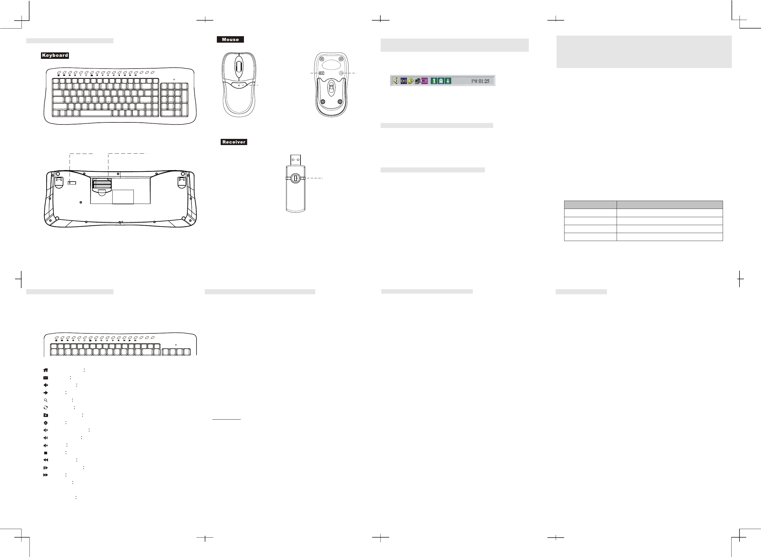 receiver, keyboard and mouse.