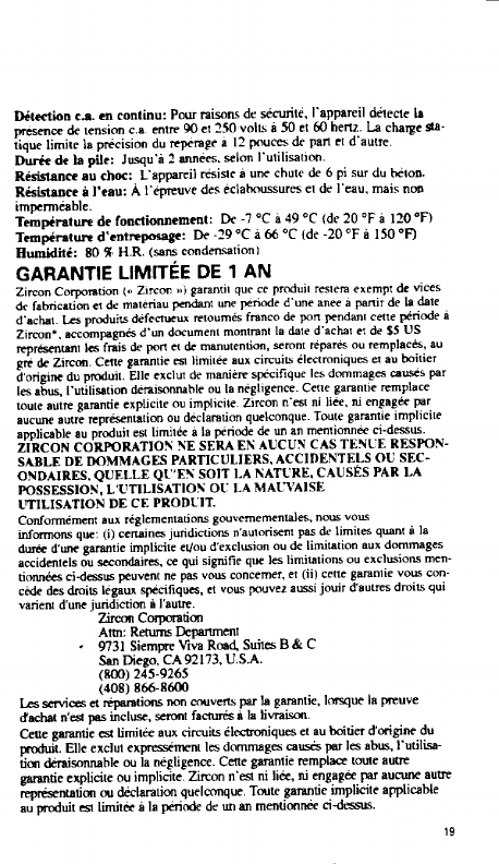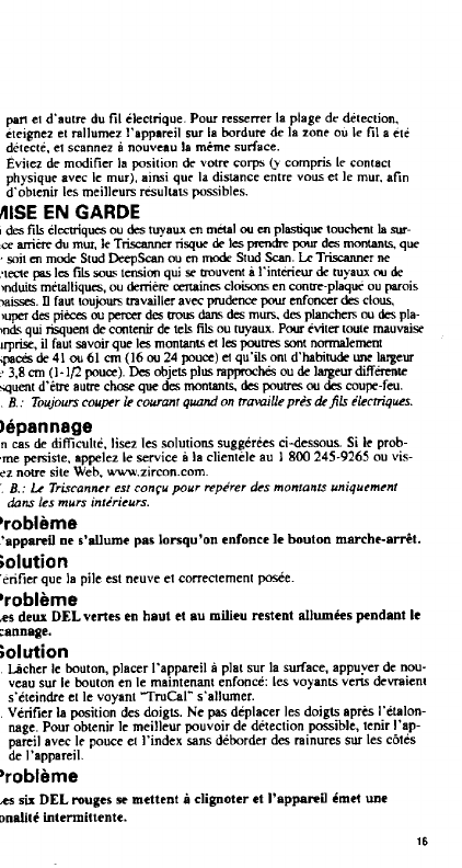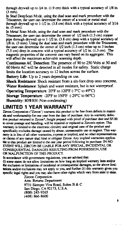 Zircon Corporation Triscanner stud finder Unknown
