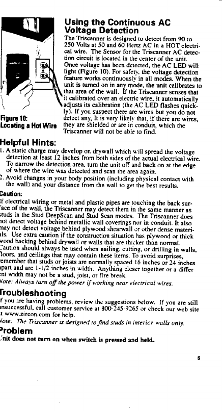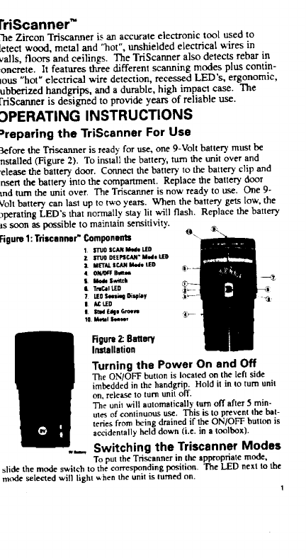 Zircon TS1 Triscanner stud finder User Manual Unknown