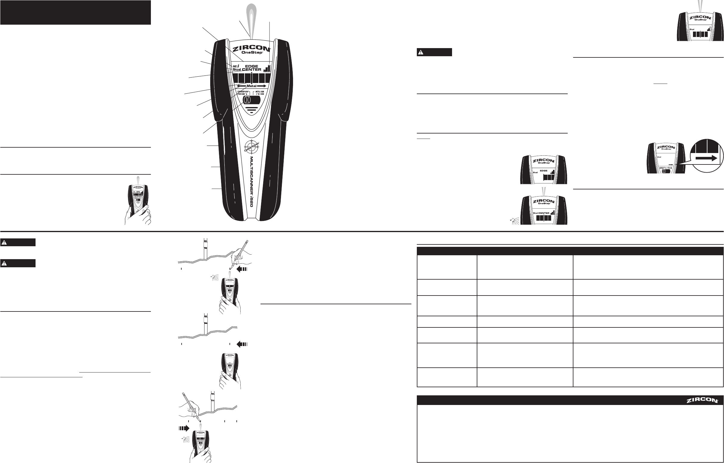 Note: Sensing depth and accuracy can vary due to moisture, content of materials, wall