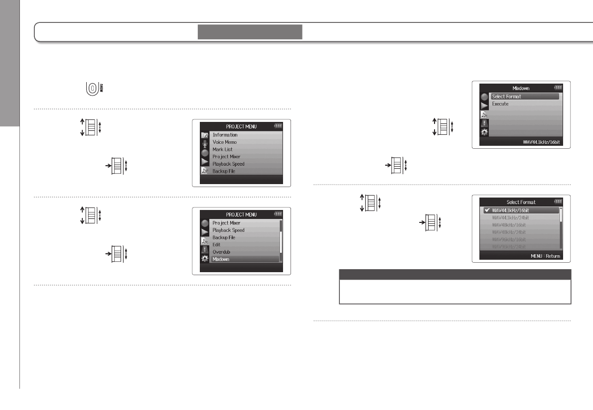Supported formats 44.1/48/96kHz, 16/24-bit, mono/stereo, BWF format