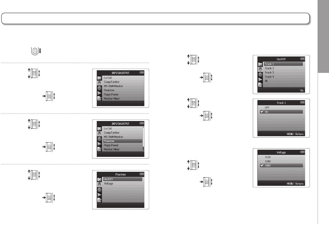 Phantom power +12/+24/+48V (can be turned ON/OFF independently for INPUTS 1–4)