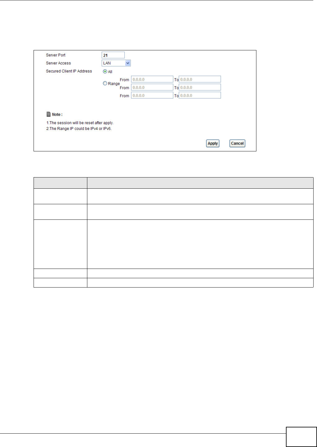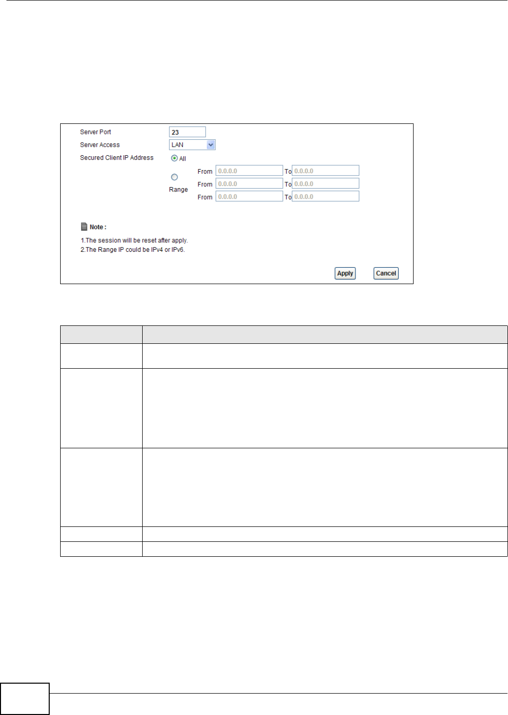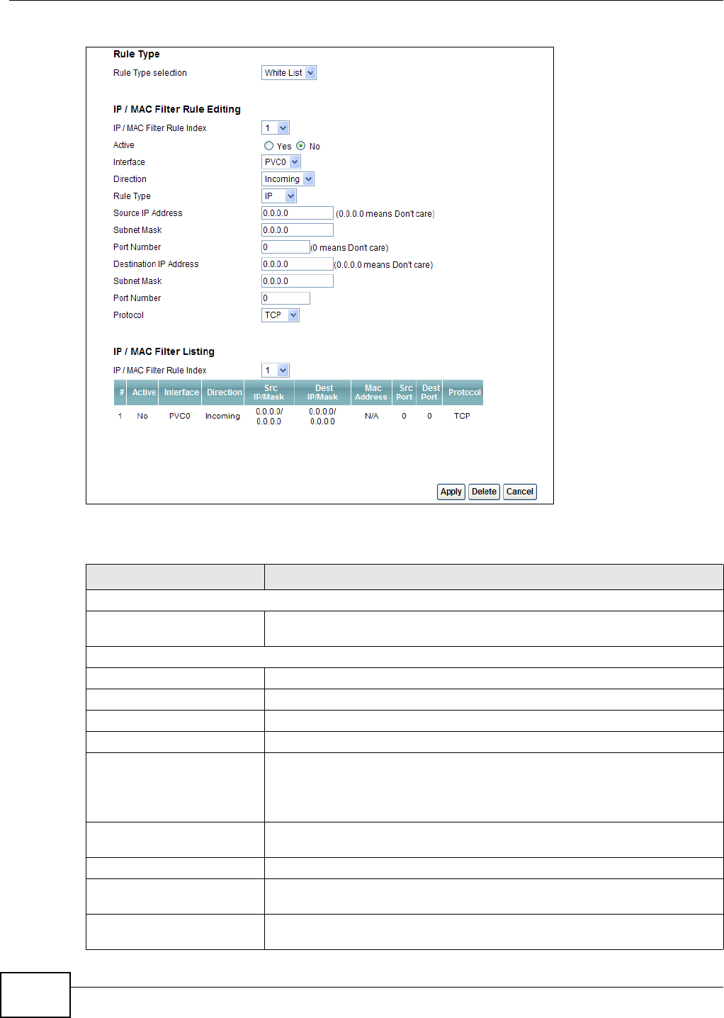 •Use the IP/MAC Filter screen (Section 14.2 on page 167) to create IP and MAC filter rules.