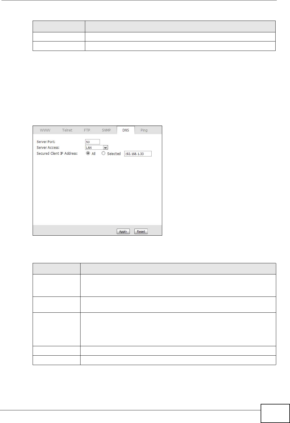 Table 61 TOOLS > Firewall > Service Setting