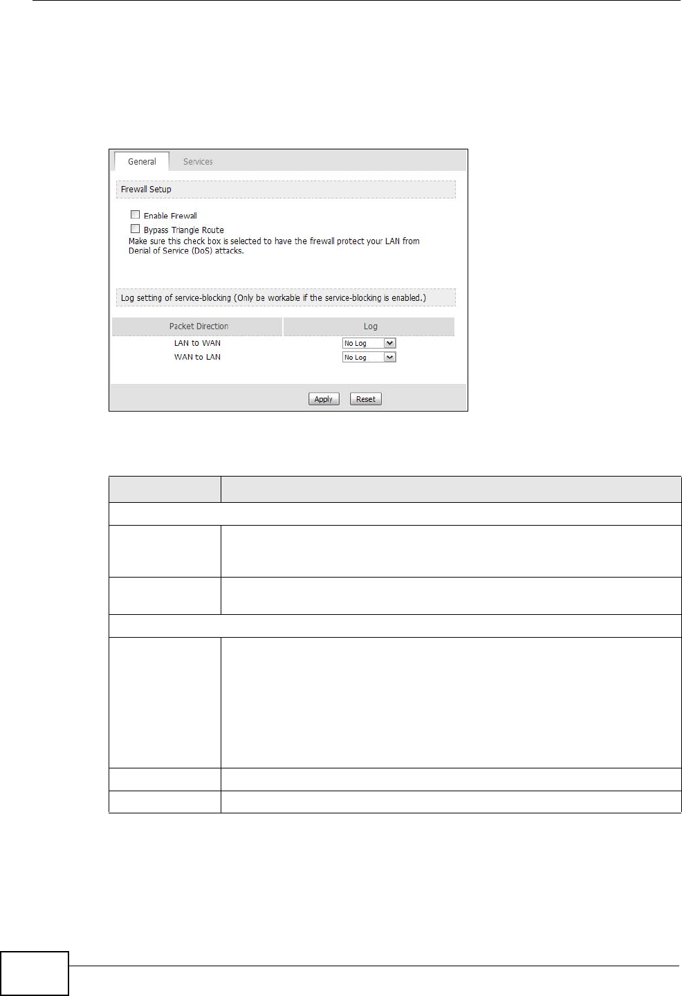 Table 60 TOOLS > Firewall > General