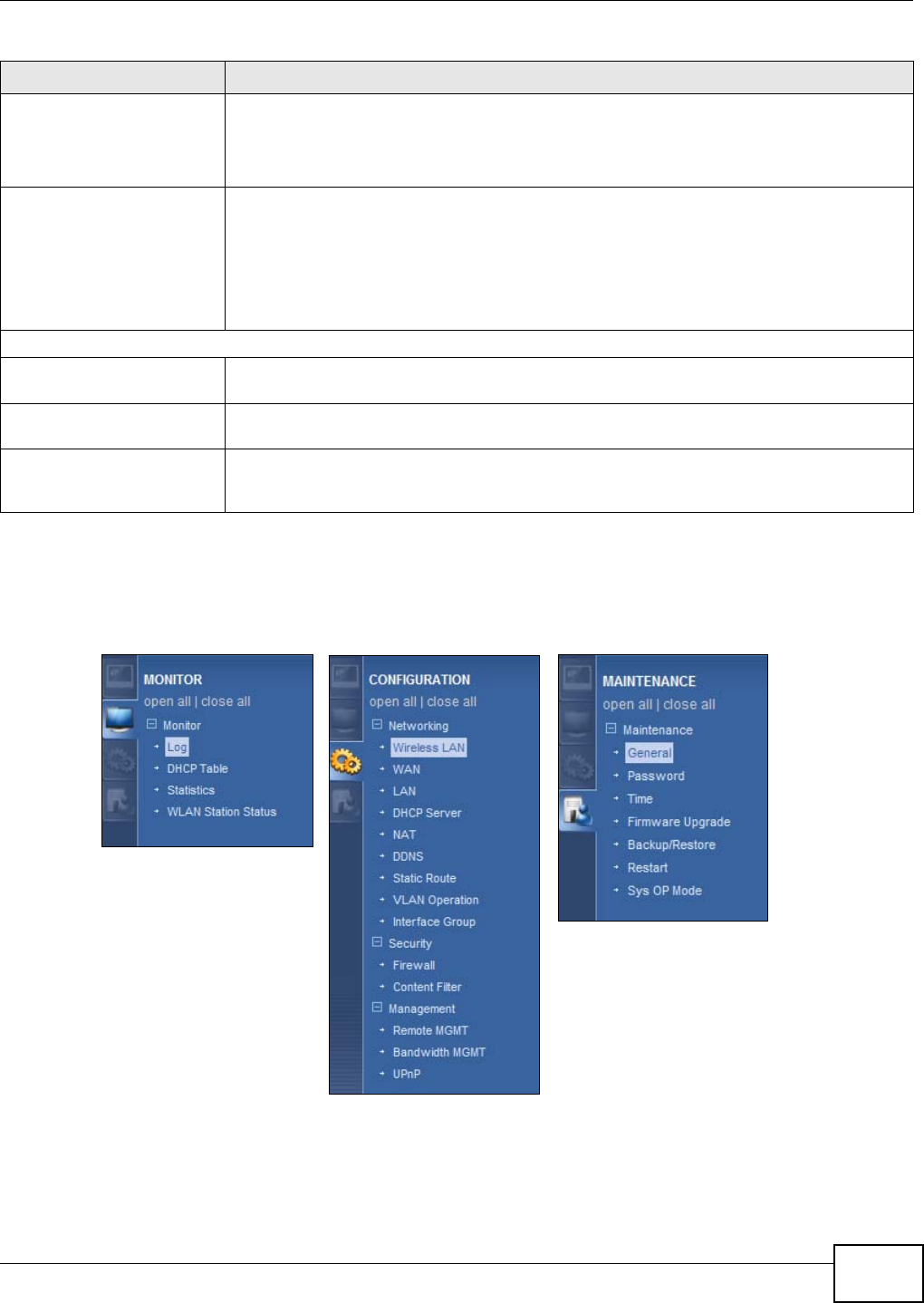Maintenance > Log > Log Setting means you first click Maintenance in the navigation panel,