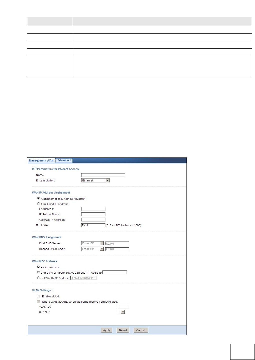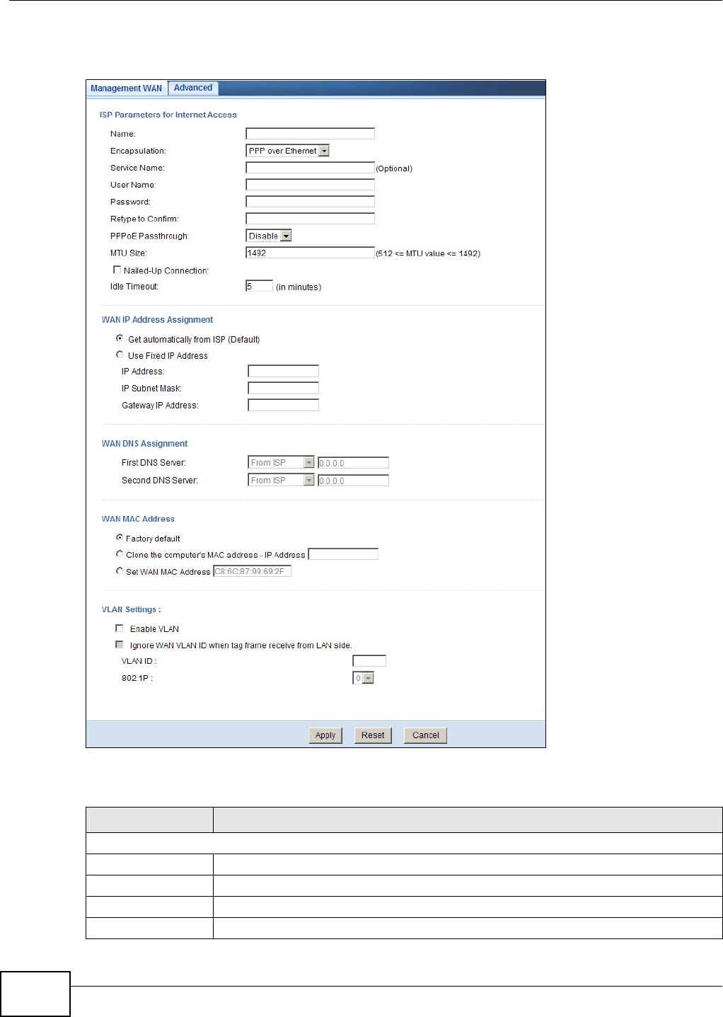 WAN MAC address 70