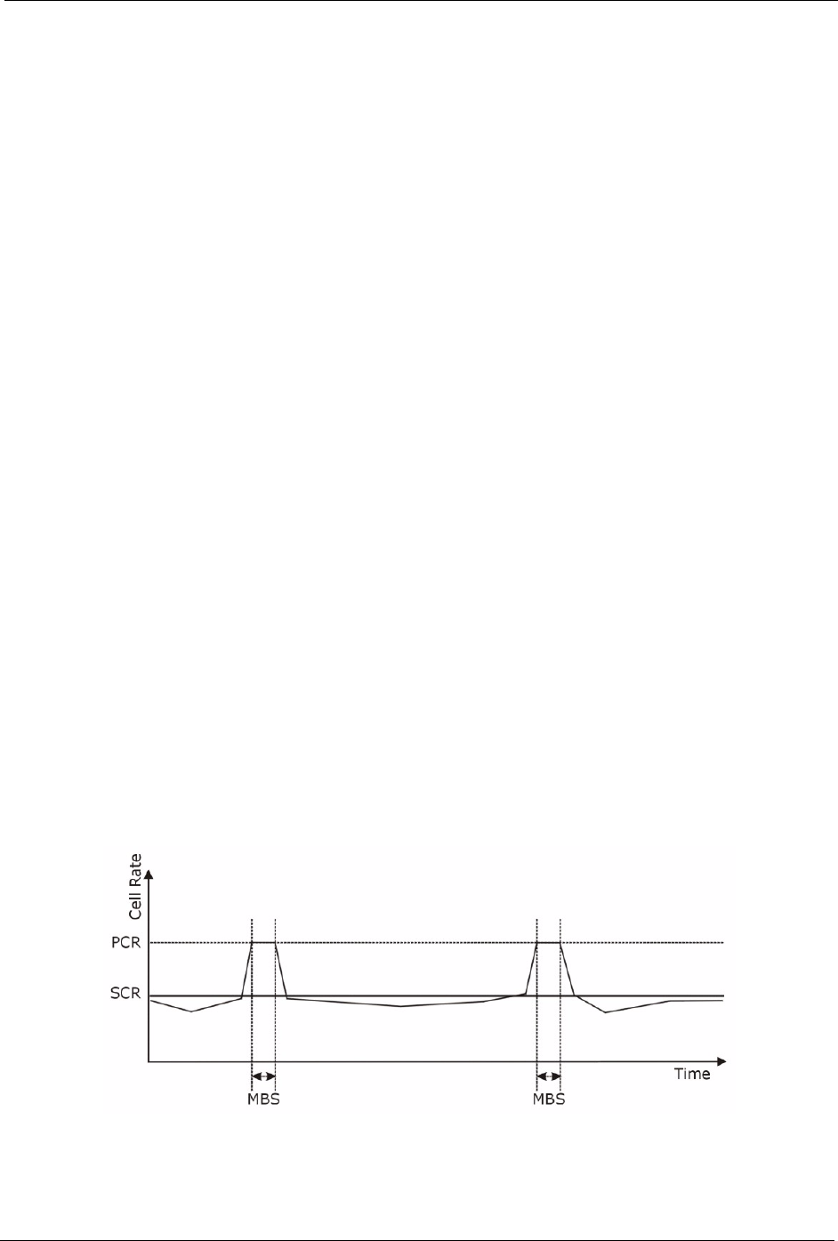 traffic typical on LANs. PCR and MBS define the burst levels, SCR defines the minimum