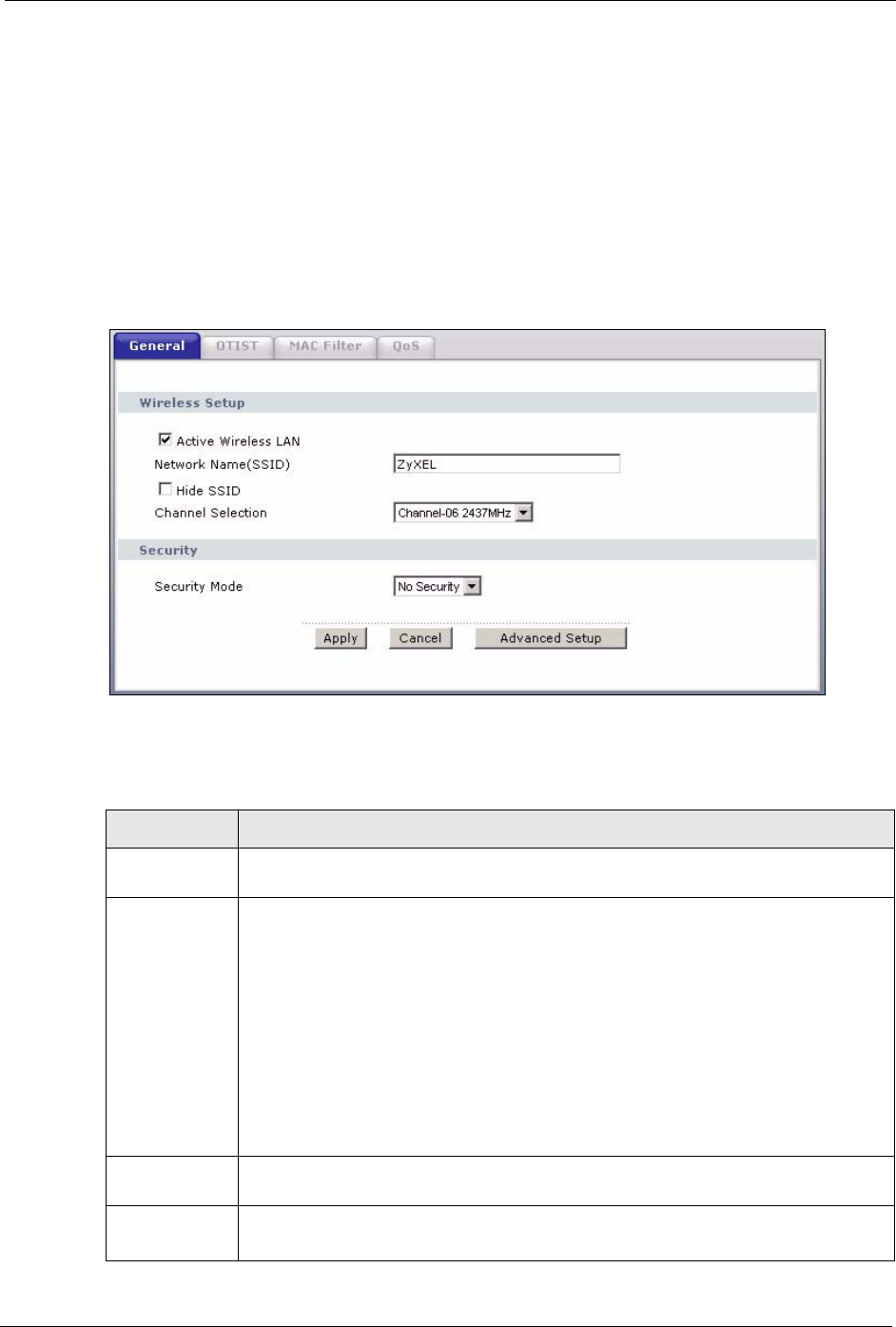 Click Advanced Setup to display the Wireless Advanced Setup screen and edit