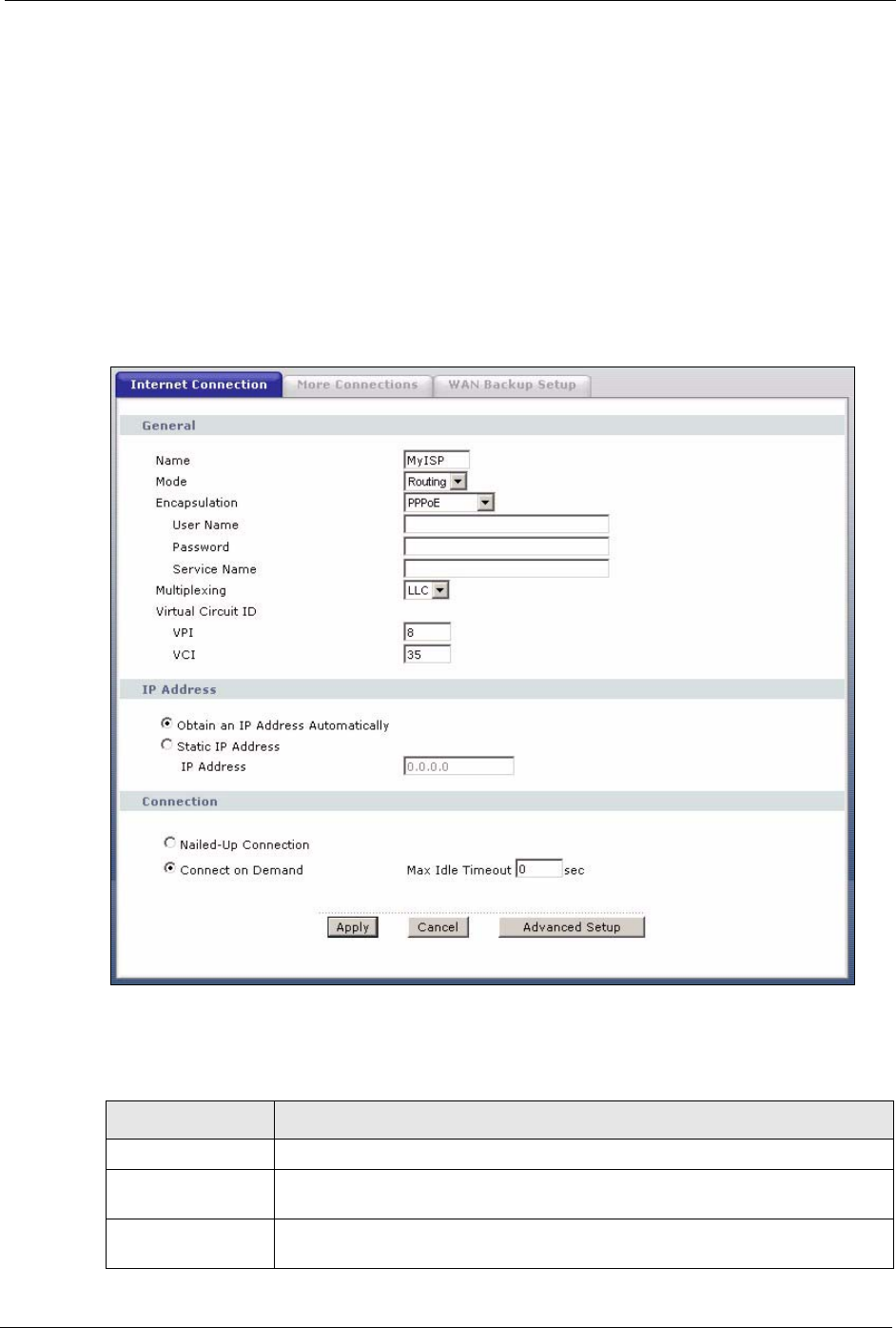 first is that idle timeout is disabled. The second is that the ZyXEL Device will try to bring up