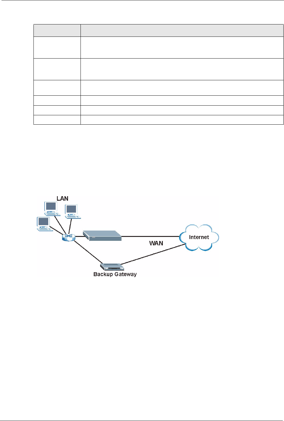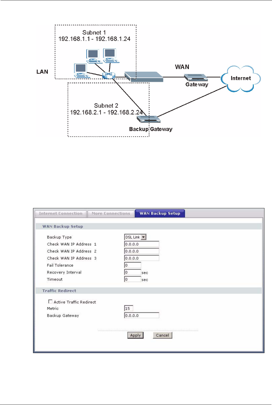 default route. If the normal route fails to connect to the Internet, the ZyXEL Device tries the