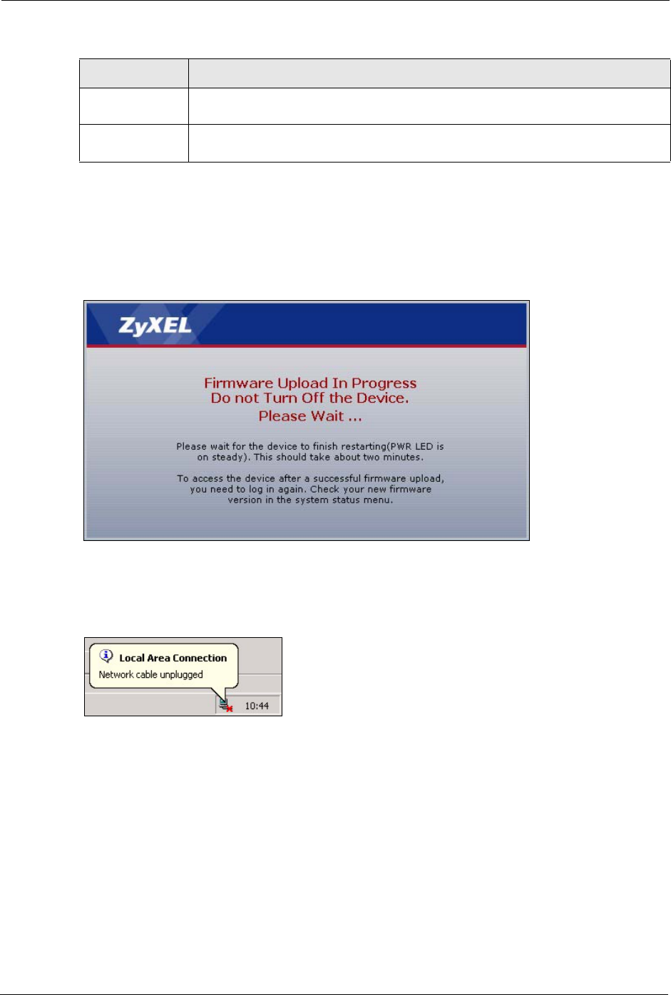 Note: Do NOT turn off the ZyXEL Device while firmware upload is in progress!