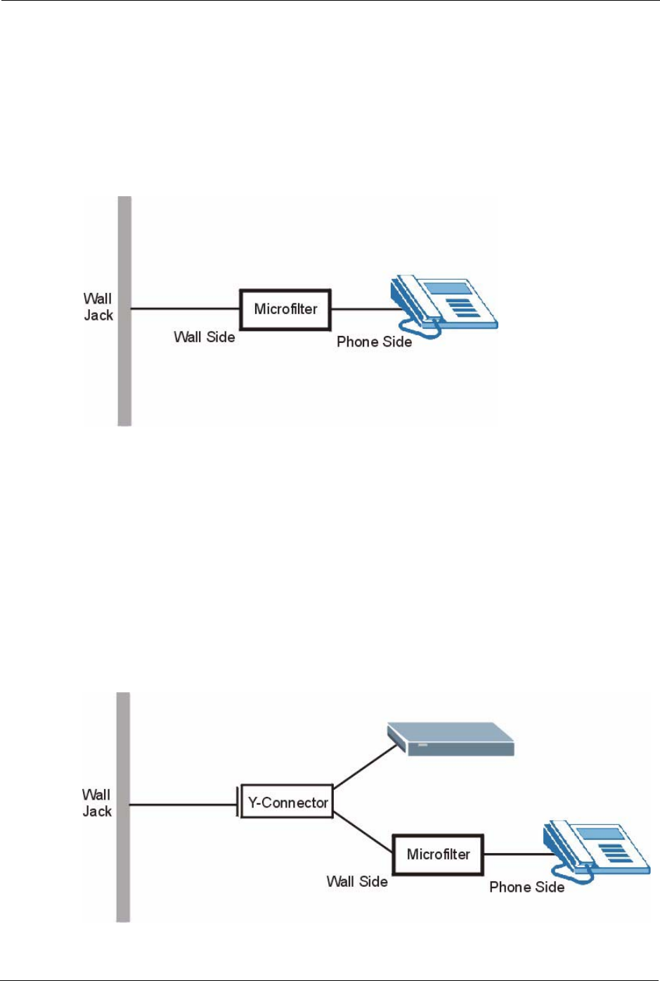 4Connect the “phone side” of the microfilter to your telephone as shown in the following