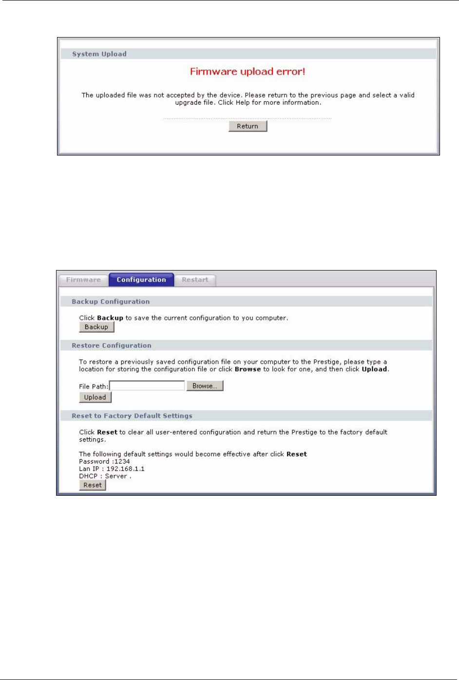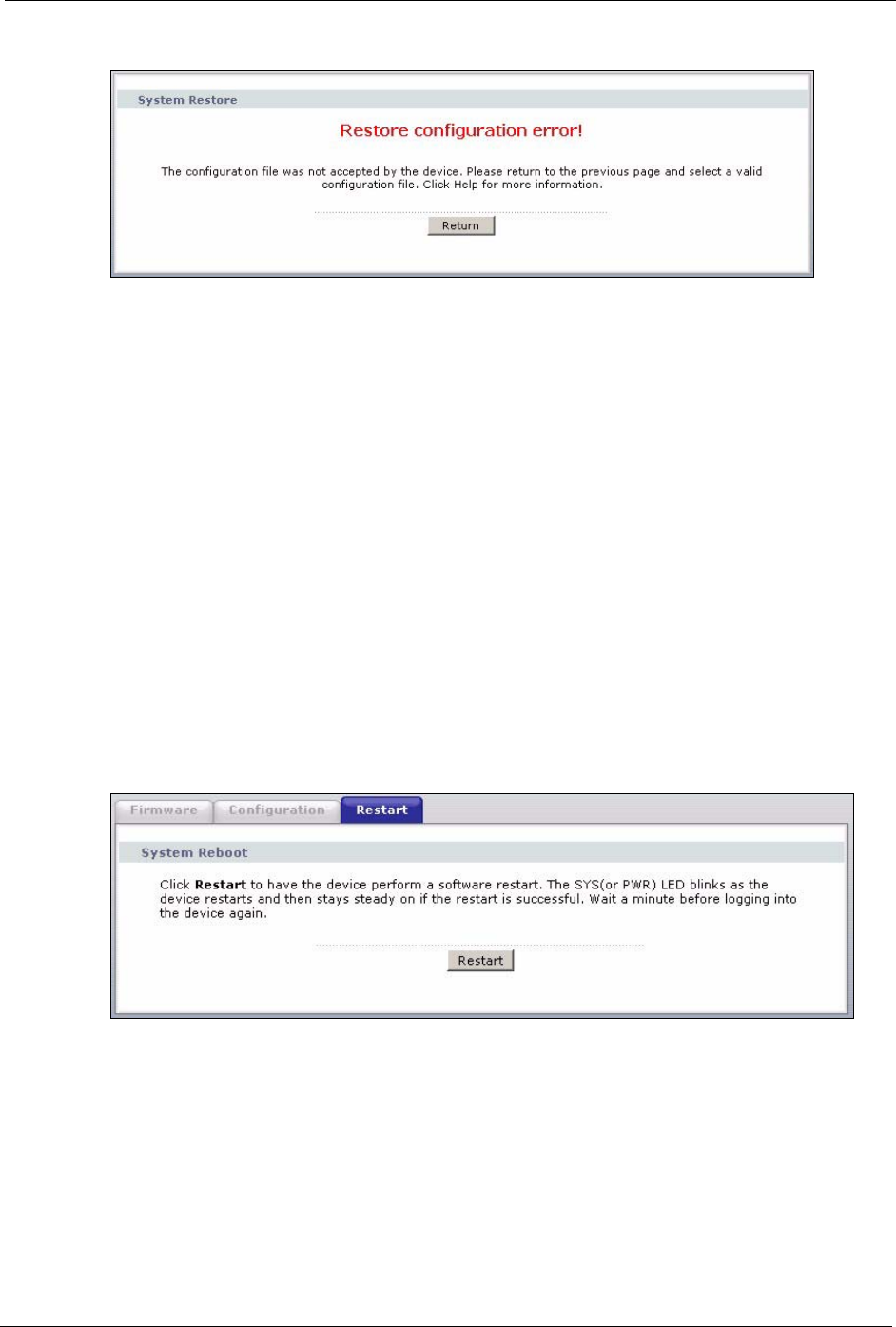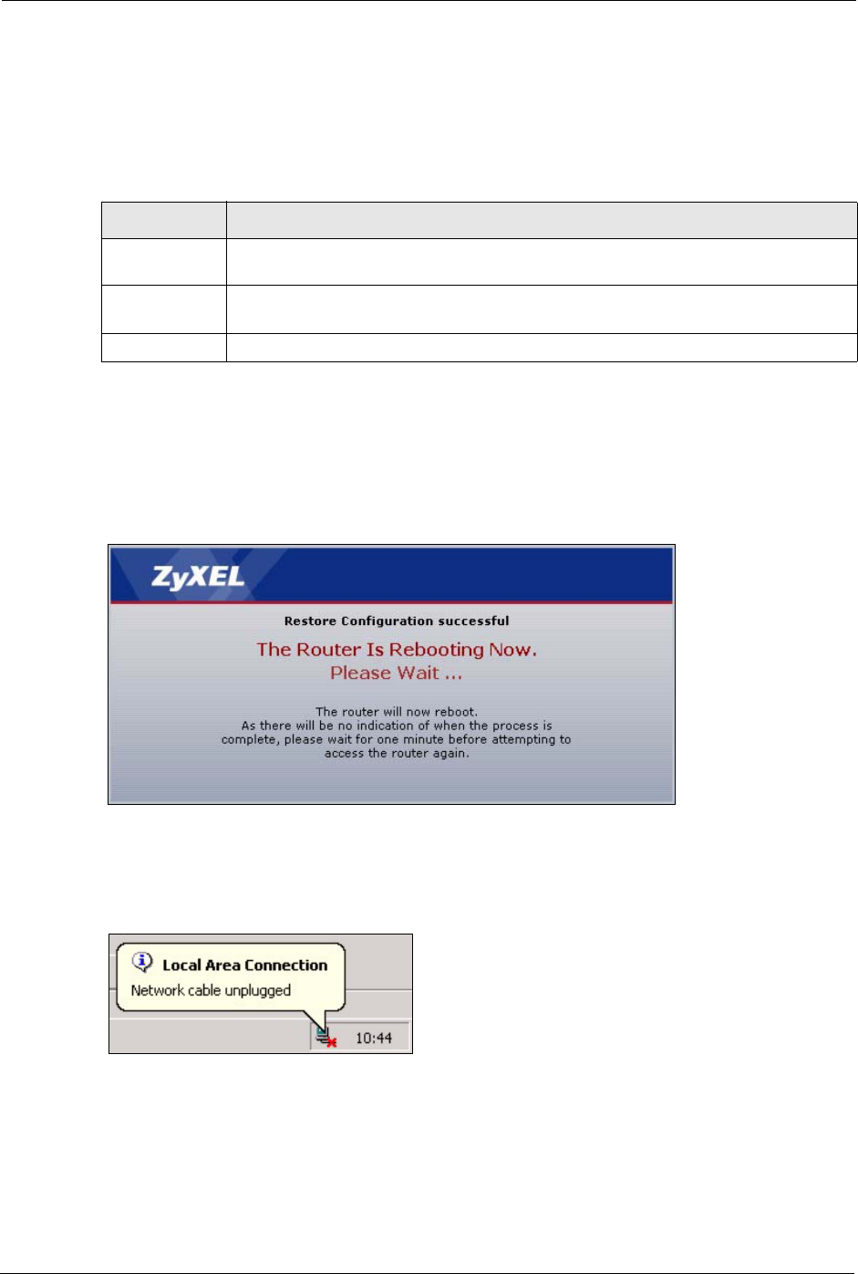 Note: Do not turn off the ZyXEL Device while configuration file upload is in progress