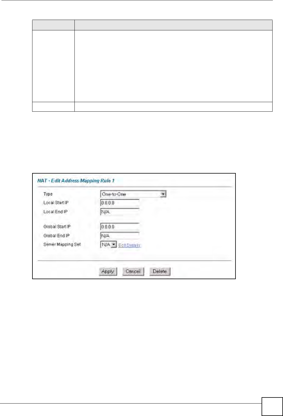 Use this screen to edit an address mapping rule. Click the rule’s link in the NAT Address